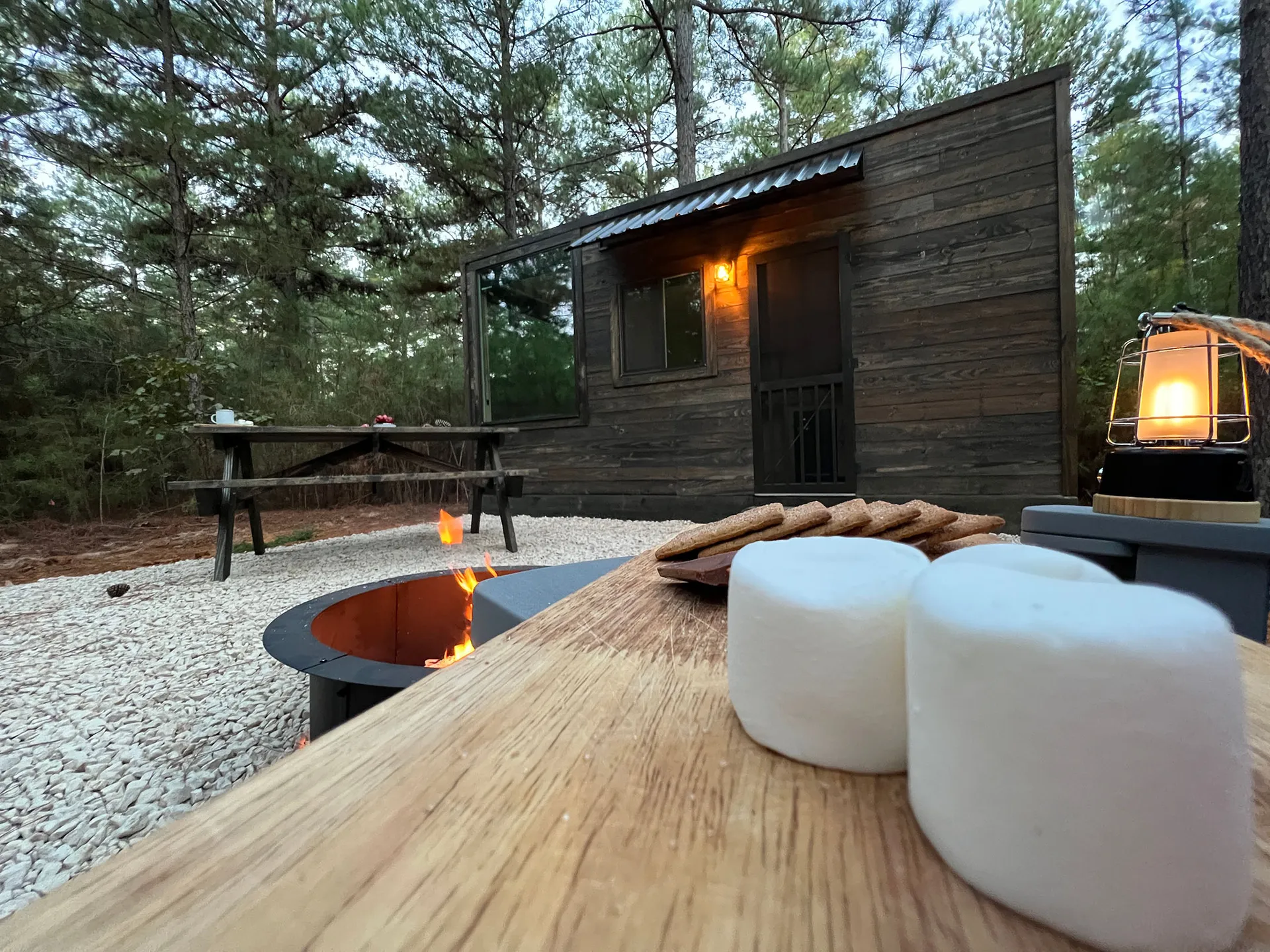 "This was a great secluded getaway for us. Loved the big windows in the sleeping area. Adirondack chairs around the fire pit were very comfortable. It was a simple way for us to disconnect and unplug from our busy lives and just be together. I will definitely be back."